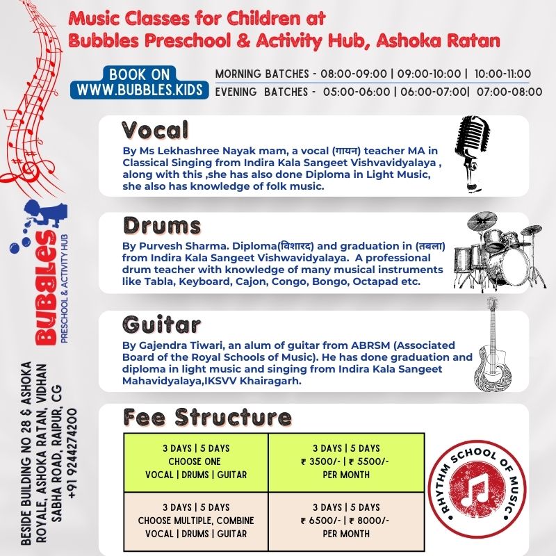 Gajendra Tiwari is the Guitar teacher at Rhythm School of Music. He has studied guitar from ABRSM (Associated Board of the Royal Schools of Music). Also, he has done graduation and diploma in light music and singing from Indira Kala Sangeet Mahavidyalaya,IKSVV Khairagarh.